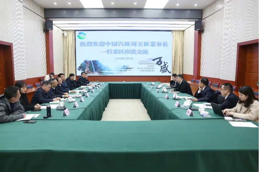 2月2日,中国汽研党委书记、董事长周玉林,副总经理王锐,中国质量认证中心总经理助理王欢喜一行赴万盛经济技术开发区(简称:万盛经开区)走访交流。万盛经开区党工委书记戴明,党工委副书记、管委会主任方磊接待。