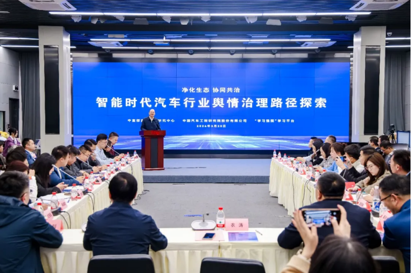 3月20日,“智能时代汽车行业舆情治理专题交流会”在北京举行。会议由中宣部宣传舆情研究中心与中国汽车工程研究院股份有限公司(以下简称中国汽研)联合成立的“汽车行业舆情研究治理办公室”牵头,多家主流汽车企业参与,标志着我国从国家层面构建系统性声誉治理与舆论护航新体系。中宣部宣传舆情研究中心党委书记、主任,“学习强国”学习平台总编辑农涛,中国汽研党委委员、总会计师、董事会秘书黄延君出席会议。