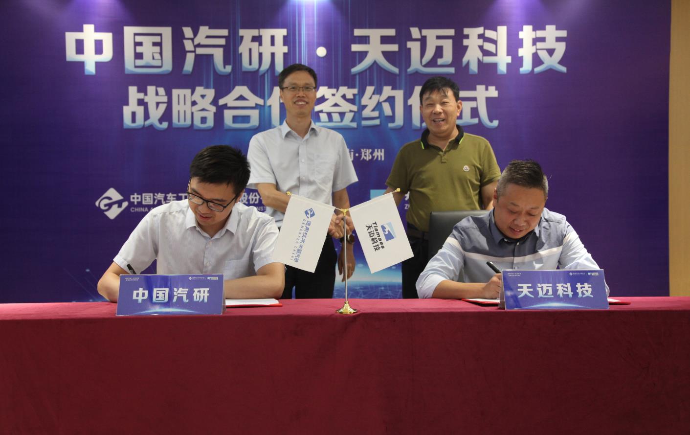 8月31日,中国汽研与天迈科技签署战略合作备忘录。中国汽研党委副书记、董事刘安民和天迈科技董事长郭建国见证了本次签约仪式。