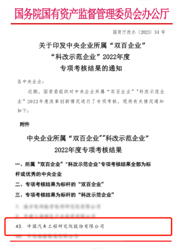 近日,国务院国资委办公厅发布《关于印发中央企业所属“双百企业”“科改示范企业”2022年度专项考核结果的通知》,公司荣获“科改示范企业”“标杆”评级,这是公司第二次获评“标杆”等级。本次全国参评的“科改示范企业”274户,评为标杆的84户、优秀91户、良好74户、合格20户、不合格5户。