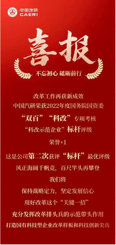 这是公司继2021年荣获“标杆”以来再次获评“标杆”等级,未来公司将以科改示范行动、提高央企控股上市公司质量工作、创建世界一流专业领军示范企业等一系列国企改革行动为契机,充分发挥国有科技型企业改革排头兵的示范带头作用,打造国有科技型企业改革样板和科技创新尖兵。