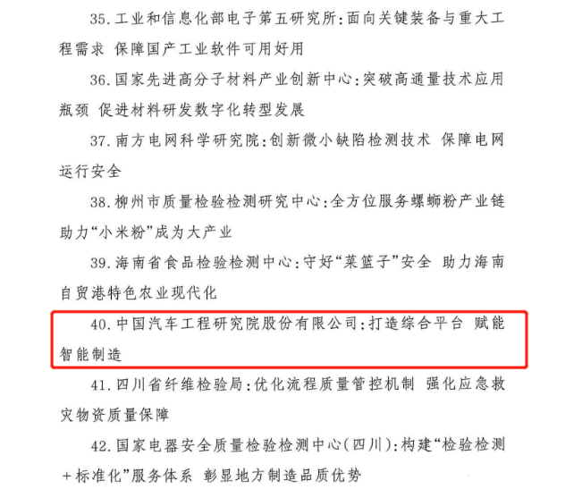 中国汽研成功入选“检验检测促进经济社会创新发展”优秀案例