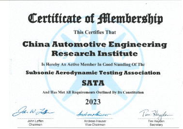 中国汽研获得亚音速空气动力测试协会(SATA)会员证书并成为其有效会员