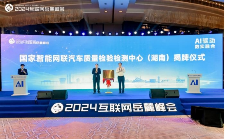 2024互联网岳麓峰会由1场岳麓论坛、5场主题论坛组成,聚焦湘商湘情、“文化+科技”融合、新时代投资新趋势、产业互联网、大模型赋能数字经济等5大领域。在“AI驱动 数实融合”主题论坛上,周玉林与湖南湘江新区(长沙高新区)党工委委员、管委会副主任,岳麓区人民政府副区长张毅,共同为“国家智能网联汽车质量检验检测中心(湖南)”(以下简称国检中心)揭牌。至此,由智能网联(湖南)公司负责建设的国检中心正式启动运营,成为了中南地区第一个、全国第四个智能网联国检中心,将为智能网联汽车产业相关企业提供全流程智能网联检验检测和研发验证服务,为发展长沙智能网联汽车产业、建设湘江科学城科技创新高地、打造长沙全球研发中心城市注入强劲动力。