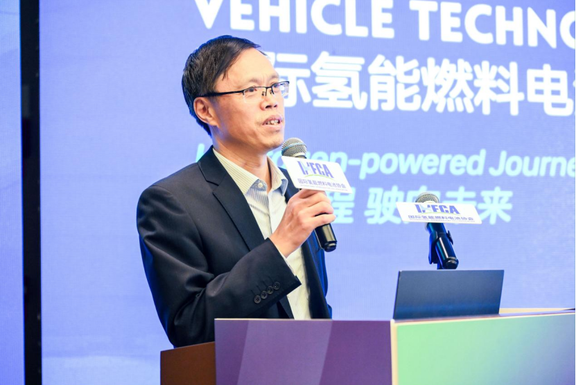 中国汽研党委副书记、董事、总经理刘安民作《加快氢安全技术与装备开发 助力产业高质量发展》主题报告,详细阐述了中国氢能产业发展与示范应用现状,分享了中国汽研针对氢能燃料电池汽车安全问题提出的测试评价技术发展方针和氢能装备布局规划。