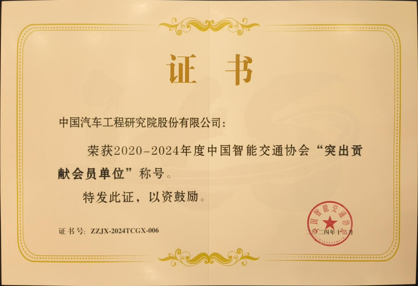 喜报丨中国汽研荣获中国智能交通协会“突出贡献会员单位”