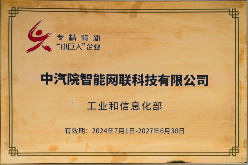 喜报丨中国汽研智能网联公司荣获国家级专精特新“小巨人”企业荣誉称号
