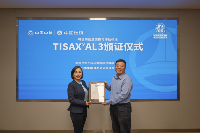 此前,中国汽研及下属双桥试验场公司、江苏公司、新能源公司、天津分公司成功通过TISAX®AL3认证。AL3是欧洲汽车行业信息安全评估和数据交换安全标准的最高等级,此次认证的通过标志着中国汽研在信息安全管理方面达到国际领先水平。