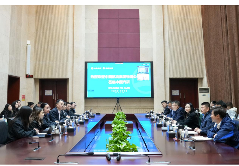 4月1日,中国航油集团物流有限公司(以下简称:中国航油物流公司)党委副书记、总经理吴佐一行到访中国汽研。中国汽研党委书记、董事长周玉林热情接待,党委委员、总会计师黄延君线上参会。