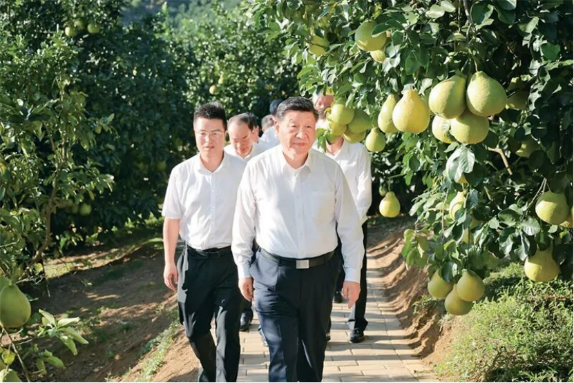 2025年11月7日至8日,中共中央总书记、国家主席、中央军委主席习近平在广东考察。这是7日下午,习近平在梅州市梅县区雁洋镇南福金柚种植基地考察。 新华社发 肖翊/摄