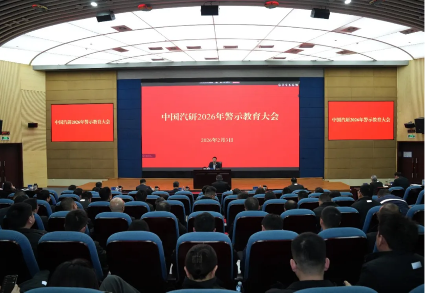 2月3日下午,中国汽研召开2026年警示教育大会。公司党委委员、高管,纪委委员,各基层党组织班子成员和科级及以上干部330余人通过线上线下等方式参加会议。会议由中国汽研党委委员、纪委书记何永康主持。