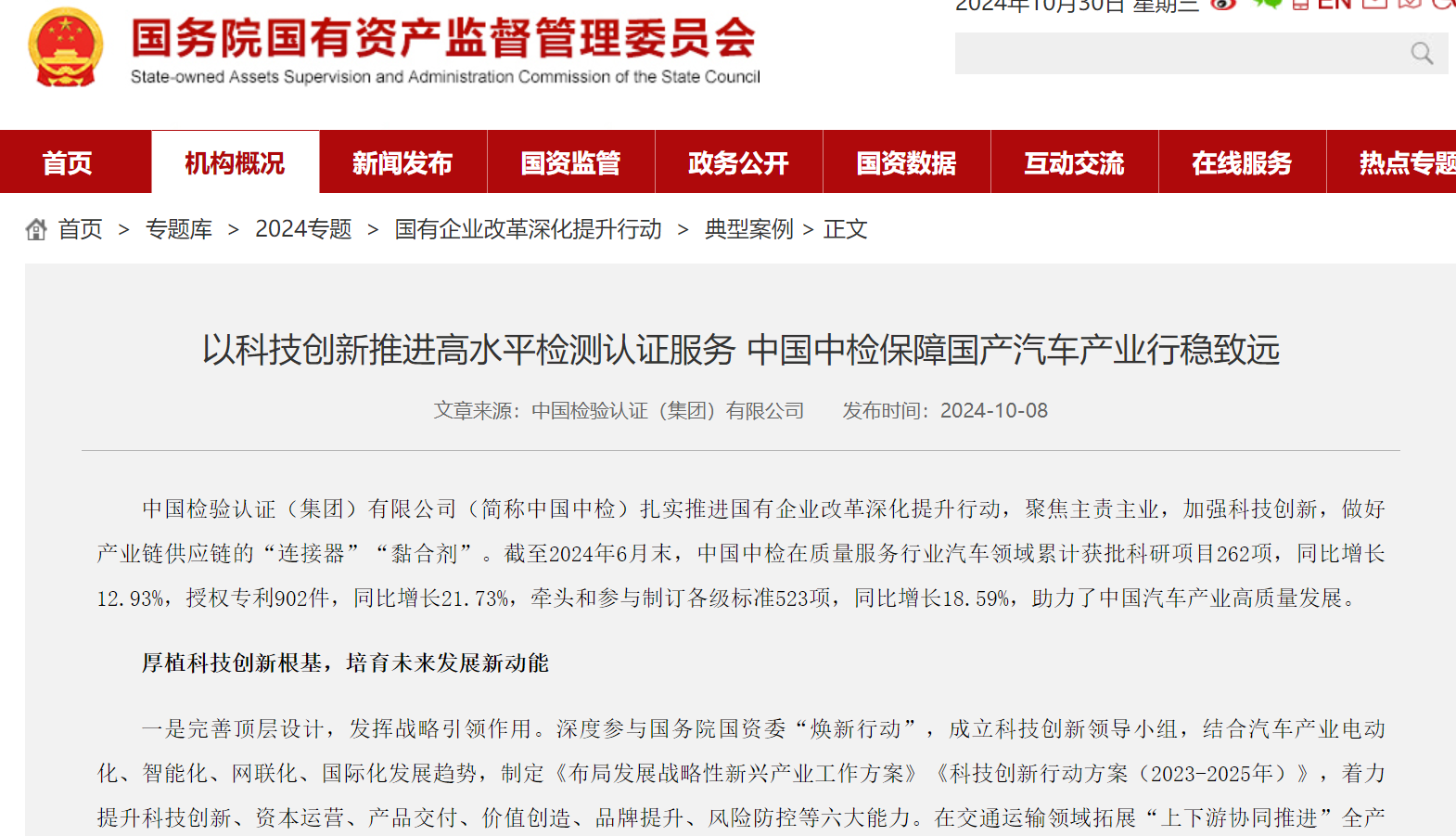 中国汽研科技创新成果被国务院国资委官网及多家媒体报道