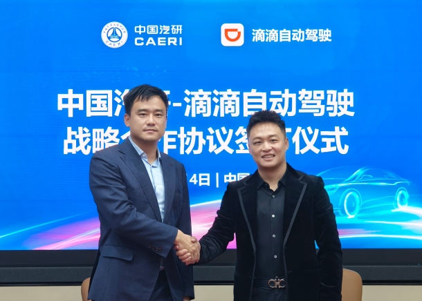 中国汽研与滴滴自动驾驶签署战略合作协议