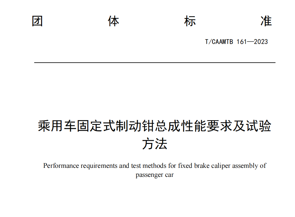 中国汽研牵头的团体标准《乘用车固定式制动钳总成性能要求及试验方法》正式发布